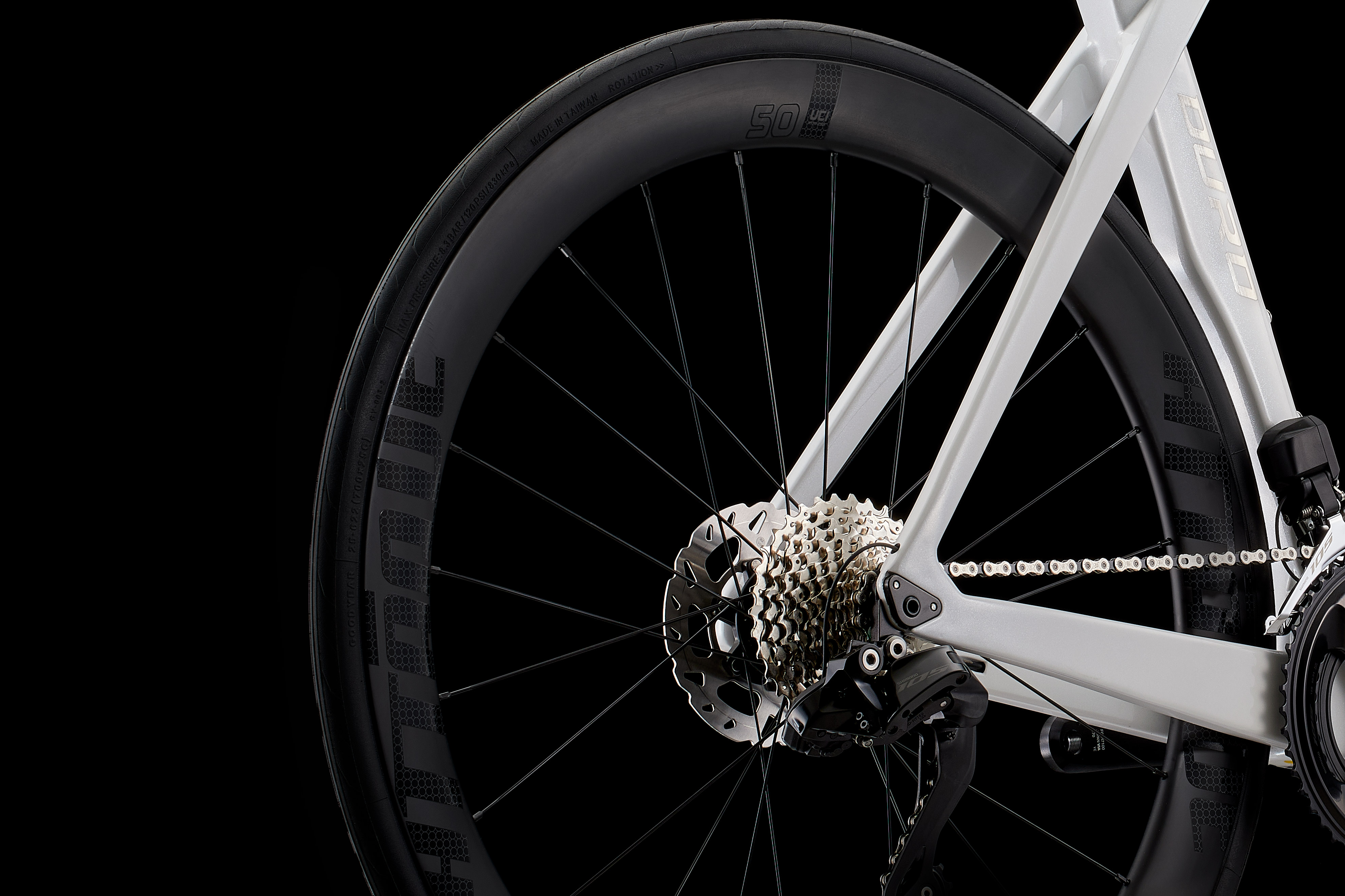 可搭配開口胎或真空胎(無內胎設計),前二後四的培林配置,可降低阻力,更搭載空力輻條,使氣流能更有效率的運行,發揮極致空力效能,將踩踏輸出最大化。